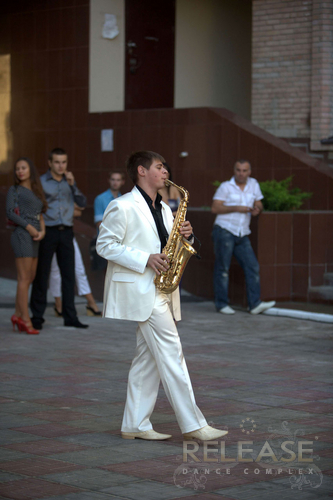 ...играл саксофон...
